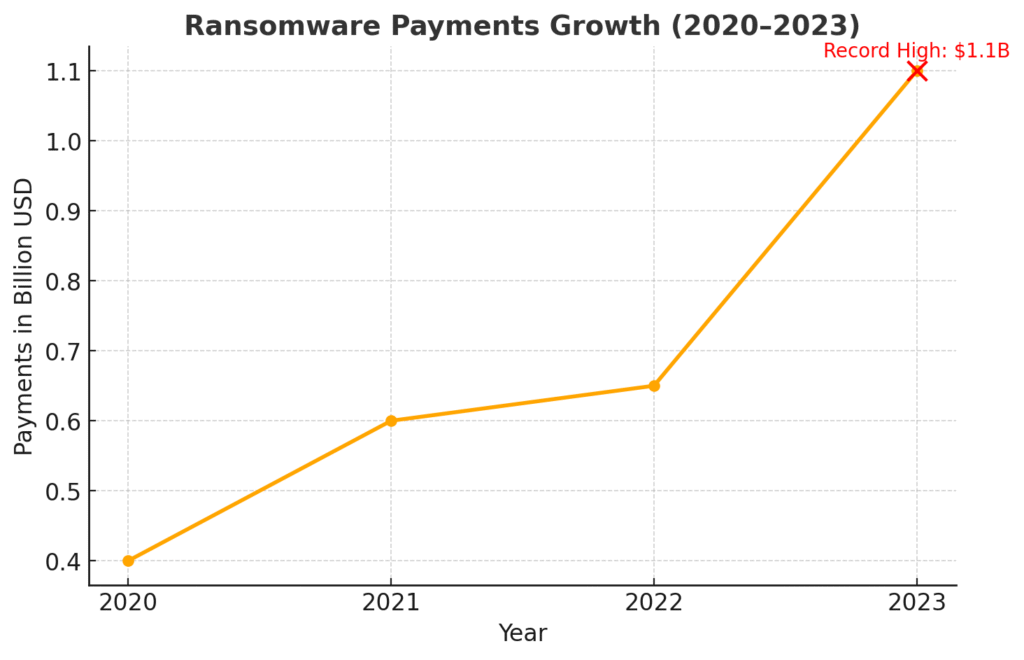 Ransomware has also reached record-breaking levels. In 2023, ransomware payments were reported to have exceeded 1.1 billion US dollars, the highest ever recorded (Cyberpilot/IBM). When ransomware strikes, businesses lose control of their systems, face extortion demands, and often experience disruption for weeks. Even after systems are restored, the ripple effect of cancelled contracts and lost revenue continues long after the initial event.